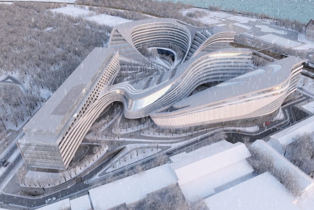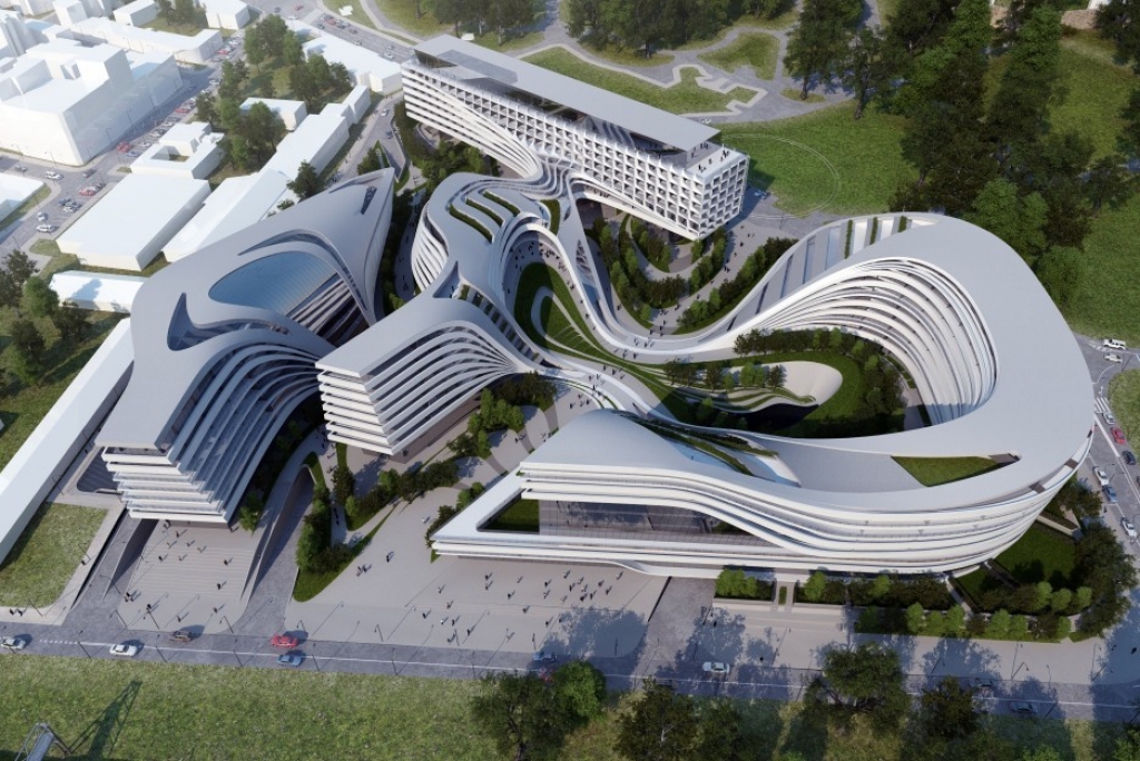 Marcando la continuación de la firma del movimiento modernista de Belgrado, lo que produjo una serie de edificios emblemáticos a lo largo de la segunda mitad del siglo XX, la capital de Serbia se enorgullece de presentar este proyecto de uso mixto que se incrusta dentro de la topografía ondulante de la fábrica textil abandonada reflejando el distintivo estilo parametrico de Zaha Hadid.