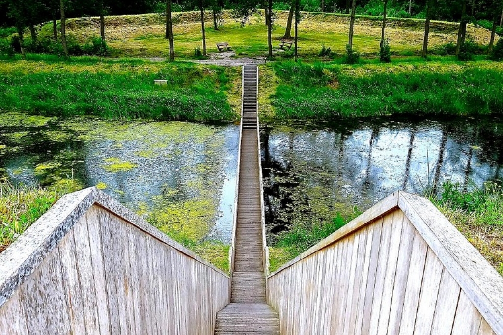 Según RO&AD, la construcción de un puente resultaría contradictoria con la condición defensiva original. Por ello, los arquitectos, que no han querido romper el carácter infranqueable del umbral de agua, proponen una pasarela "invisible" e integrada discretamente en el paisaje.